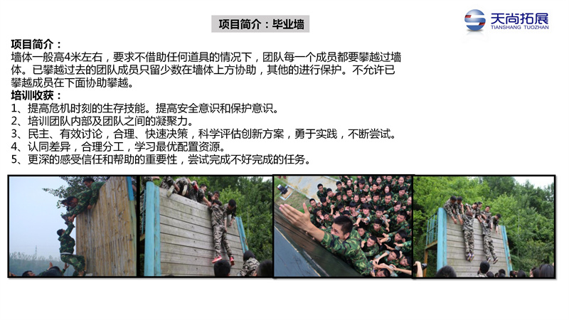 在这里没有所谓的同事 上下级 朋友之称,大家都是战友是真正的战士,2天的时候大家生死与共,共同进退,往日的矛盾瞬间不见,经过这一次的洗礼,让学员真正的走进彼此的心理能够敞开心扉去接受自己的战友,建立良好的关系,成为真正的团队,真正的狼团队。
